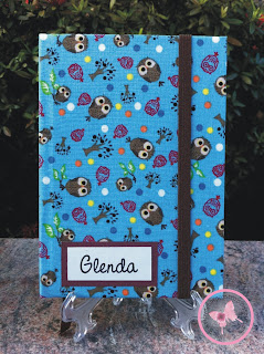 capa em tecido 100% algodão, fita marca página em cetim, fechamento em elástico...